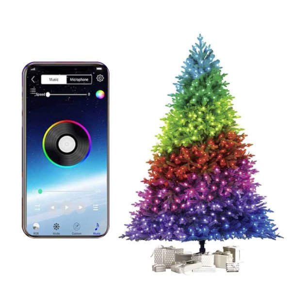 Możesz ustawić wyłącznik czasowy na włączanie i wyłączanie lampek choinkowych LED, puszczać muzykę świąteczną i ustawiać jasność lampek przy pomocy aplikacji mobilnej. Możesz również przyciemniać lampki choinkowe LED.