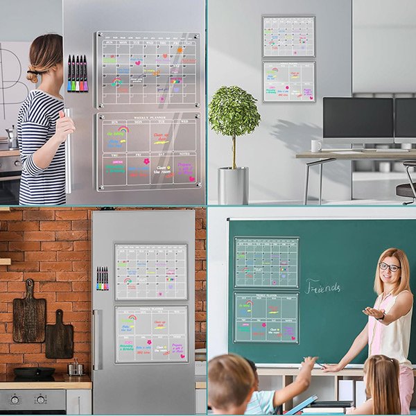 Dzięki swojej magnetycznej powierzchni z możliwością pisanie na niej i ścierania, ten kalendarz pozwala łatwo zapisywać, skreślać i zmieniać swoje plany, zwiększając jego dostosowalność i przyjazność dla użytkownika.