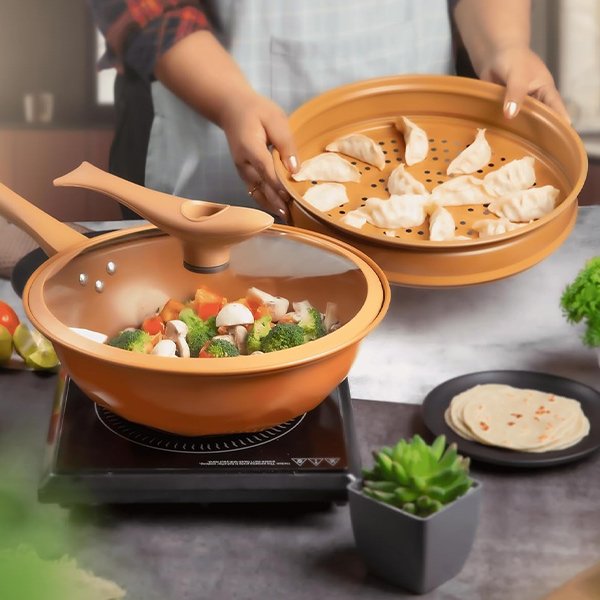 Zaprojektowana z myślą o wszechstronności, ta patelnia wok doskonale sprawdza się przy smażeniu, duszeniu, a nawet głębokim smażeniu. Jej szeroka powierzchnia i wysokie boki pozwalają łatwo mieszać składniki, wydobywając najlepsze smaki z twoich kulinarnych kreacji.