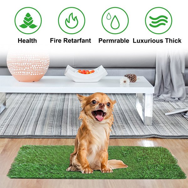 Organiczne wzornictwo naszej trawiastej maty dla psa idealnie harmonizuje zarówno z wnętrzem, jak i z zewnętrzem, dodając szczypty wyrafinowania do otoczenia Twojego pupila.