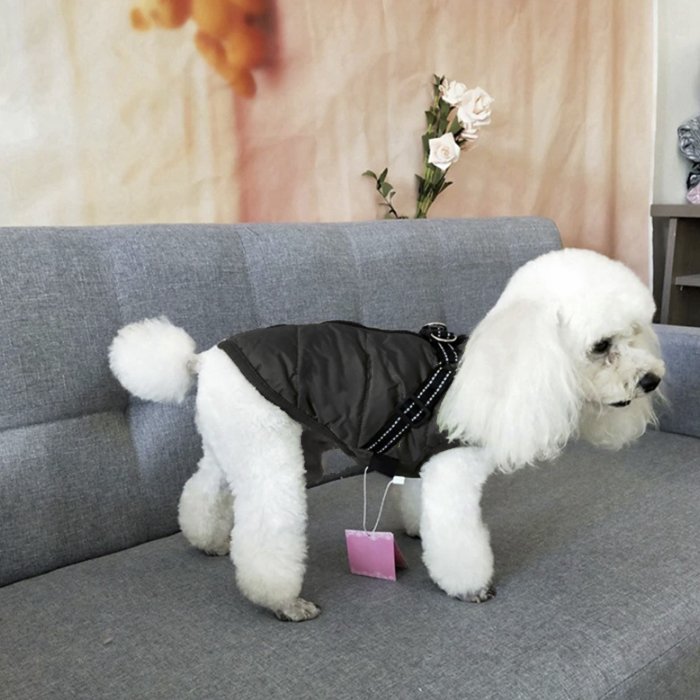 Ubranko dla psa jest wykonane z wodoodpornego materiału, jest odporne na zużycie i ma nowoczesny design. Wewnętrzna strona wykonana jest z kompozytowej tkaniny polarowej, jest ciepła i wygodna. Jest wiatroodporna, ponieważ posiada również kołnierz termokurczliwy i skutecznie zapobiega przedostawaniu się zimnego powietrza.