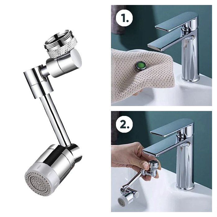 Nasze obrotowe i składane przedłużenie kranu natryskowego o 1080° nadaje się do stosowania w zlewie kuchennym, ponieważ umożliwia bardziej elastyczne mycie warzyw, owoców, naczyń lub rąk i może dotrzeć do wszystkich zakątków zlewu, podczas gdy większość innych kranów nie. Jest to bardzo przydatne dla dzieci, ponieważ niektóre mają trudności z dotarciem do kranu, aby umyć ręce lub twarz. Do użytku w umywalce łazienkowej możesz łatwiej umyć włosy i twarz. Jednocześnie przedłużenie kranu o dużym kącie obrotu jest wygodniejsze do czyszczenia całego zlewu.