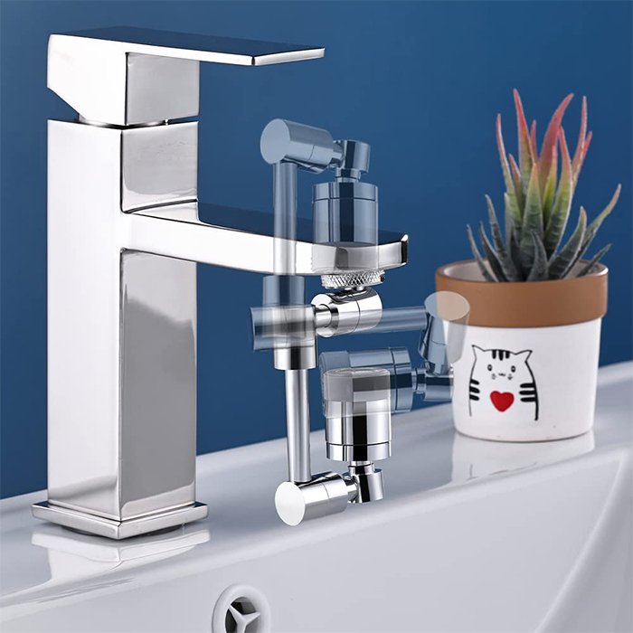 Nasze obrotowe i składane przedłużenie kranu natryskowego o 1080° nadaje się do stosowania w zlewie kuchennym, ponieważ umożliwia bardziej elastyczne mycie warzyw, owoców, naczyń lub rąk i może dotrzeć do wszystkich zakątków zlewu, podczas gdy większość innych kranów nie. Jest to bardzo przydatne dla dzieci, ponieważ niektóre mają trudności z dotarciem do kranu, aby umyć ręce lub twarz. Do użytku w umywalce łazienkowej możesz łatwiej umyć włosy i twarz. Jednocześnie przedłużenie kranu o dużym kącie obrotu jest wygodniejsze do czyszczenia całego zlewu.