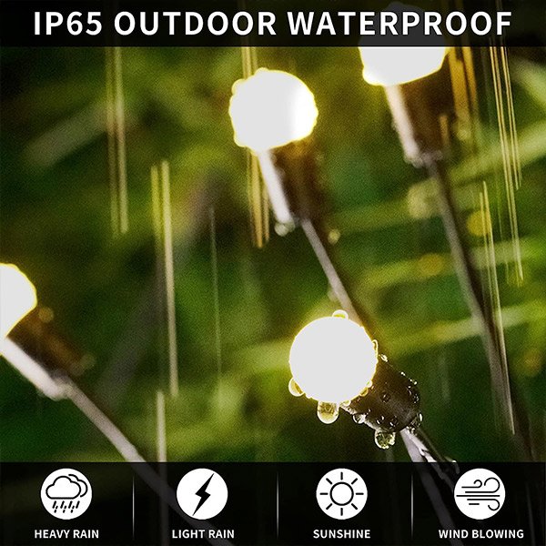 Lampki Firefly wykonane są z wysokiej jakości materiałów i zaprojektowane tak, aby wytrzymać różne warunki pogodowe, dzięki czemu można ich używać przez cały rok. Ich trwała konstrukcja zapewnia odporność na deszcz, wiatr i śnieg, dzięki czemu idealnie nadają się do użytku na zewnątrz o każdej porze roku.
