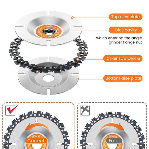 Zmień swoją szlifierkę kątową w piłę do cięcia drewna, idealną do szybkiego usuwania drewna, cięcia i ogólnego kształtowania. Tnie wszystko z twardego drewna, plastiku i innych miękkich materiałów nieżelaznych.