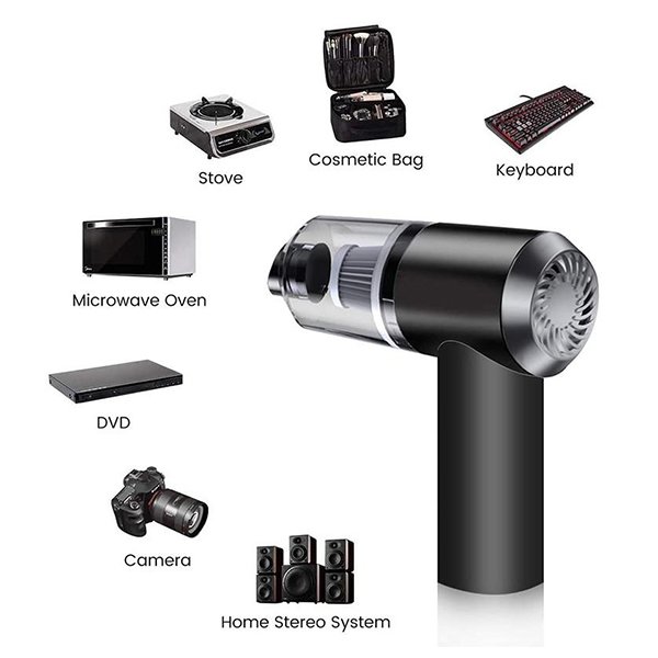Jego moc ssania jest wystarczająco duża, aby w jednej chwili zebrać wszystkie resztki jedzenia, cząsteczki kurzu i sierść zwierząt. Możesz go użyć do czyszczenia samochodu, urządzeń elektronicznych, odkurzacza do mebli, sierści zwierząt, biurek i tak dalej.
