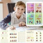 Zestaw 4 zeszytów dla dzieci idealnie nadaje się do ćwiczeń i zabawy. Zaprojektowano go z myślą o ćwiczeniu alfabetu, liczb, rysunku i matematyki, a przy tym dostarcza również wielu interesujących informacji i zabawnych wyzwań.