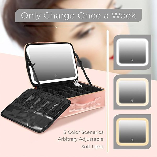 Dzięki swojemu smukłemu i lekkiemu designowi nasz kosmetyczny kufer podróżny z lustrem bez problemu zmieści się w walizce lub torebce, pozwalając Ci zabrać swoje kosmetyki wszędzie, gdziekolwiek się udasz.