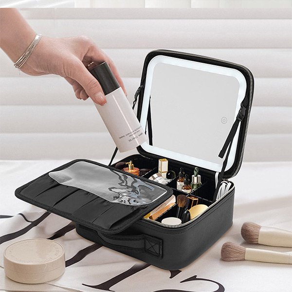 Zachowaj swoje kosmetyki schludnie poukładane dzięki wielu przegródkom, które ułatwiają znalezienie dokładnie tego, czego potrzebujesz, gdy tego potrzebujesz. Koniec z przeszukiwaniem poplątanego bałaganu – ciesz się bezstresową rutyną piękności.