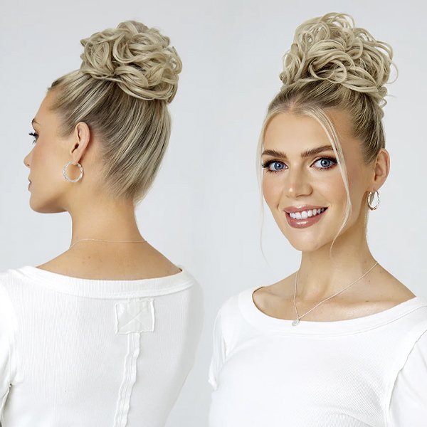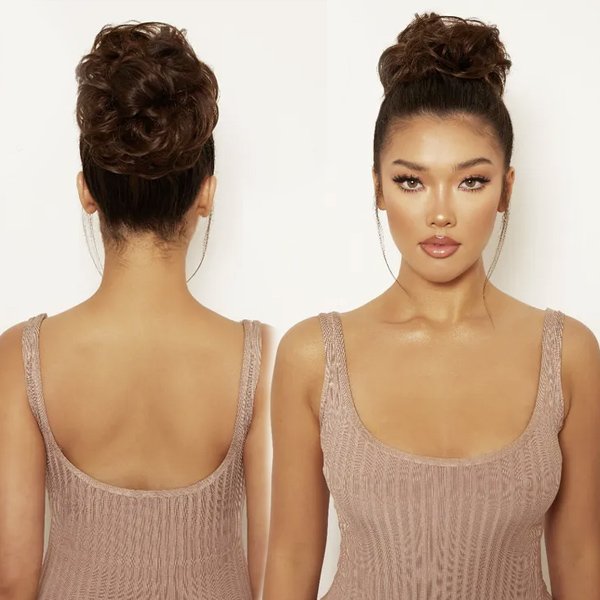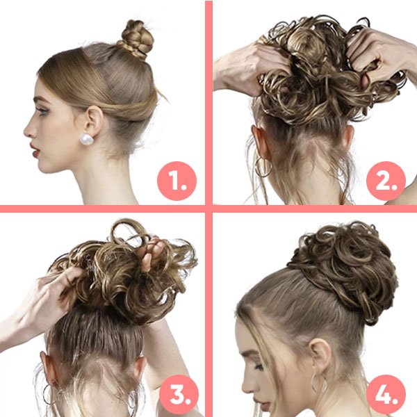 Aby uzyskać ładną objętość włosów, gumkę można związać w kucyk, tak jak zwykłą gumkę. W ten sposób w kilka sekund stworzysz zupełnie nową fryzurę. Syntetyczna gumka do włosów to świetny sposób na zaoszczędzenie czasu i pieniędzy, które w przeciwnym razie zostałyby wydane na profesjonalnych fryzjerów. Teraz możesz zrobić to sam, ponieważ możesz stworzyć bujny koczek na czubku głowy.