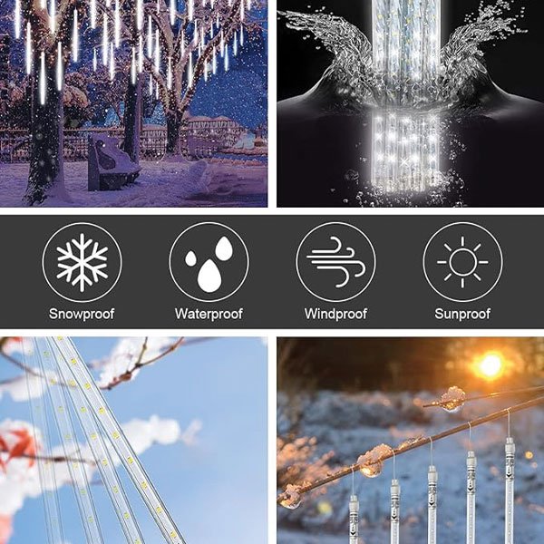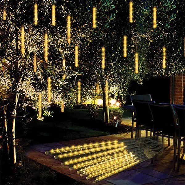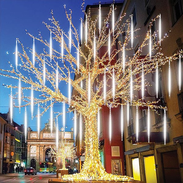 Światła LED są tworzone w celu zilustrowania efektu deszczu meteorów. W ten sposób uzyskasz oszałamiające światło we wnętrz i na zewnątrz domu.