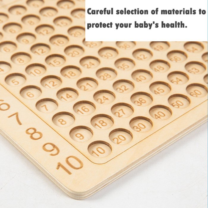Tablica mnożenia wykonana jest z naturalnego drewna, niełatwego do uszkodzenia i trwałego. Ma gładką powierzchnię bez ostrych krawędzi, dzięki czemu nie zaszkodzi dziecięcym rączkom. Zapewnij swoim dzieciom wygodę nauki dzięki narzędziom zaprojektowanym specjalnie dla nich.