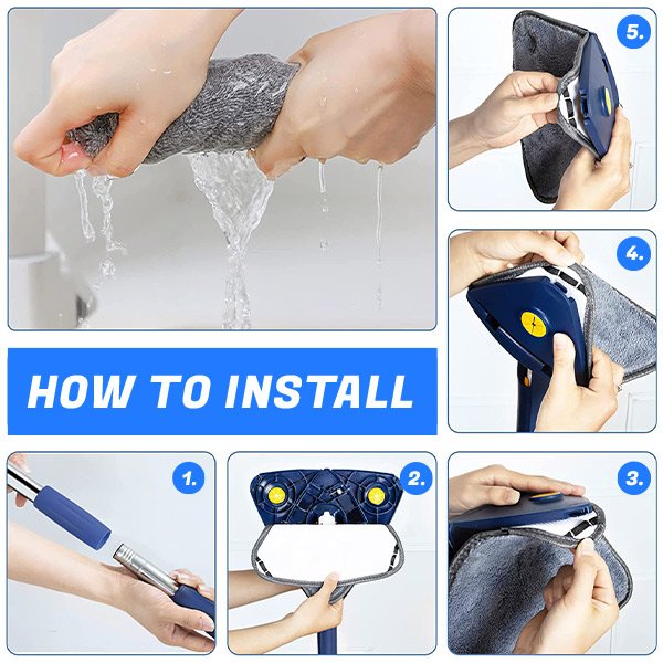 Nasz obrotowy system czyszczenia podłóg zawiera zaawansowaną ściereczkę z mikrofibry, która skutecznie zbiera brud samą wodą, bez żrących chemikaliów. Dzięki temu powierzchnia będzie czysta i nieuszkodzona. Możesz go używać do czyszczenia płytek, drewnianych podłóg, okien i szkła, laminatu, winylu i tak dalej.