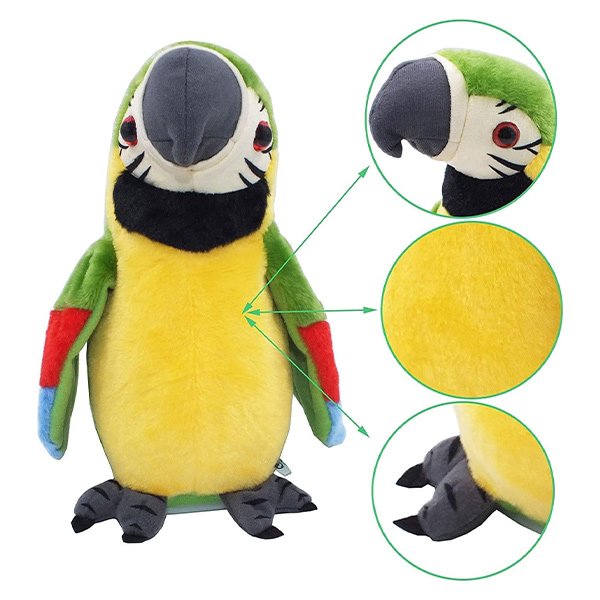 Wykonana z wysokiej jakości, super miękkich materiałów, nasza pluszowa gadająca papuga jest nie tylko bardzo miła w dotyku, ale także bezpieczna dla dzieci. To idealny przytulny przyjaciel do zabawy i snu.