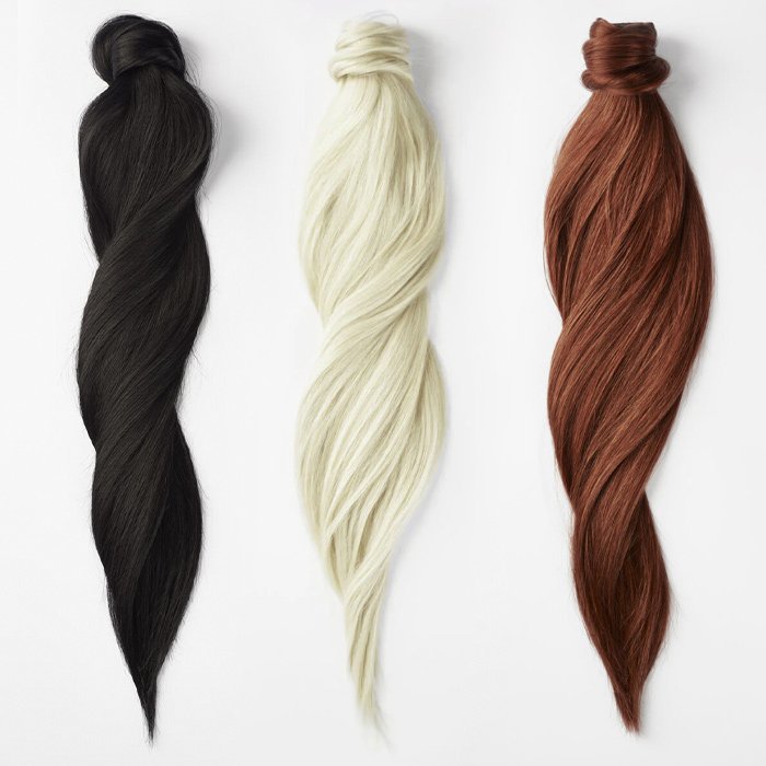 Możesz wybierać pomiędzy prostymi i kręconymi dopinkami do włosów w kucyk w różnych kolorach. Proste włosy sztuczne idealnie łączą się z prostymi włosami naturalnymi, lecz możesz dodać objętości kucykowi przy użyciu falistych i kręconych przedłużek syntetycznych.