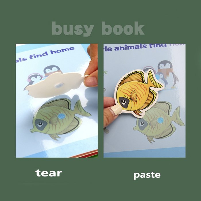Książeczka jest odpowiednia dla dzieci, ponieważ wykonana jest z najwyższej jakości materiałów odpornych na rozdarcia i wodę. Ogólny projekt cichej książki jest skierowany do małych dzieci, ponieważ karty odpowiedzi z obrazkami mają zaokrąglone rogi, pokryte są wodoodporną i niełatwą do rozerwania folią. Wielkość kartek jest dostosowana do chwytu małych rączek, a maluch wzmocni zmysł dotyku kilkakrotnie przyklejając elementy w książeczce. Książka wykorzystuje wyraźne kolorowe obrazki, które pomagają dzieciom lepiej zrozumieć otoczenie i rozpoznawanie kolorów.