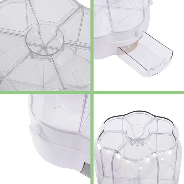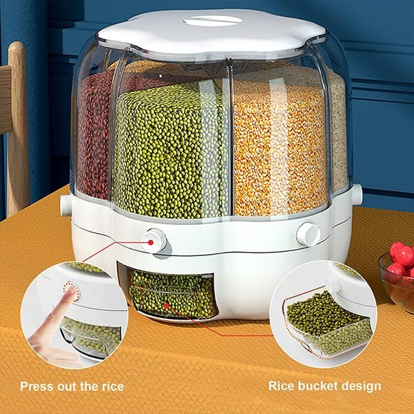 Bez względu na to, czy przechowujesz produkty suchych, resztki jedzenia czy przekąski, nasz pojemnik na żywność o obrocie 360° zapewnia łatwy dostęp i bezproblemową organizację, stając się niezbędnym dodatkiem do każdej kuchni.