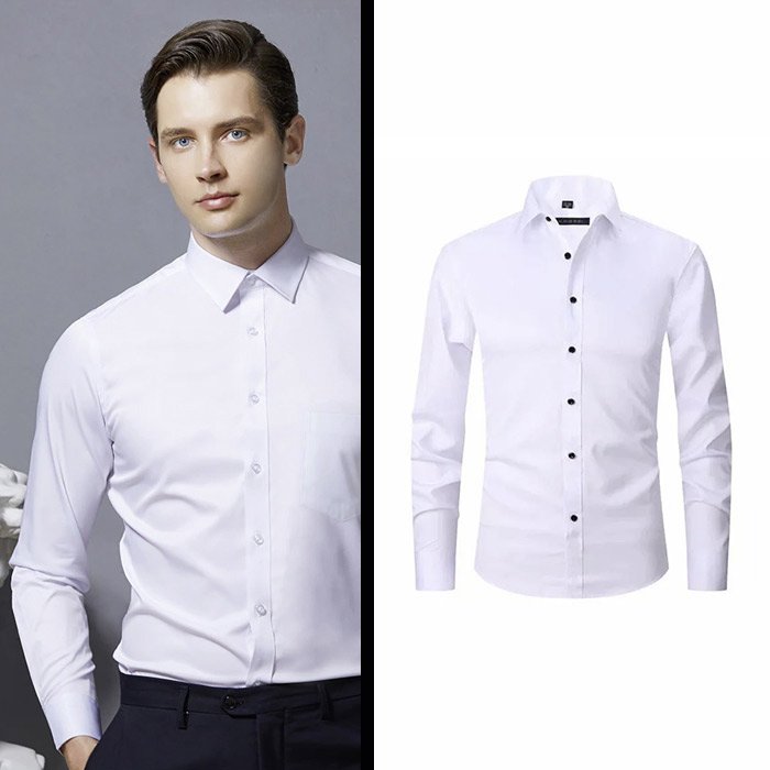 Materiał jest wygodny i oddychający. Został zaprojektowany, aby odprowadzać wilgoć z ciała, dzięki czemu jest świeży i chłodny. Prasowanie tkaniny nie jest konieczne, ponieważ męskie koszule bez zagnieceń są wykonane z bardziej miękkiego i lżejszego materiału, co dodatkowo ogranicza zagniecenia.
