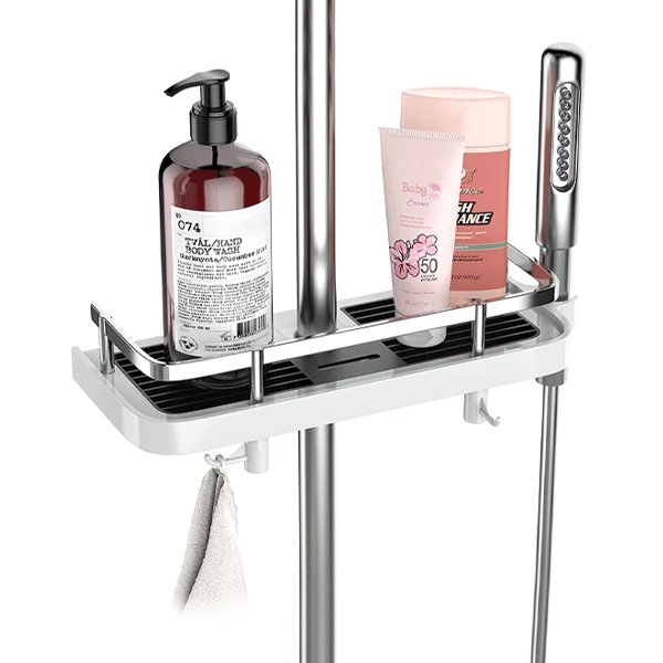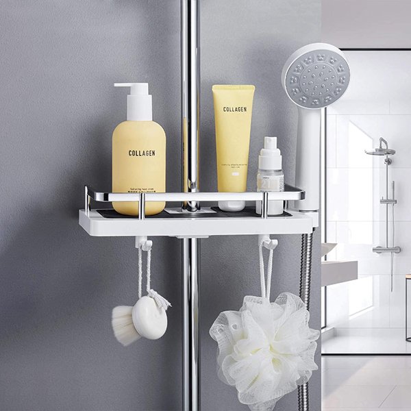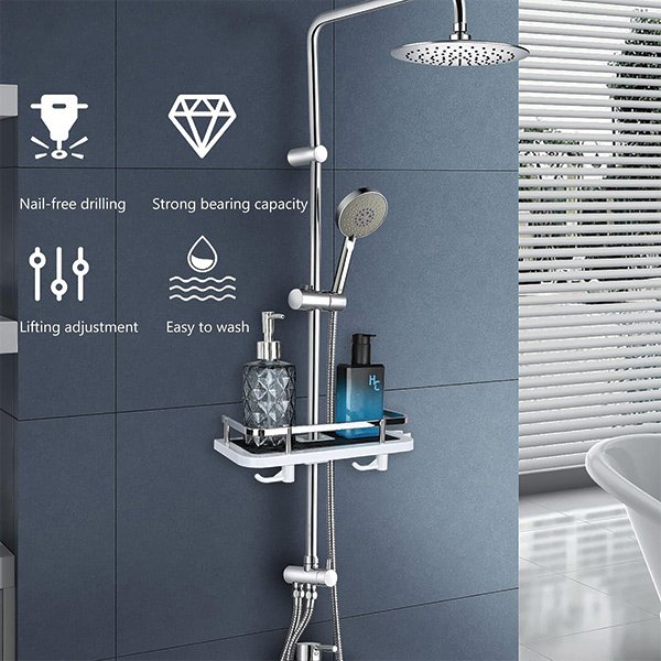 Dzięki wielu regulowanym półkom i haczykom, Showy oferuje dużo miejsca do przechowywania, aby trzymać Twoje niezbędne przybory pod prysznicem w zasięgu ręki. Pożegnaj się z sięganiem po szampon z podłogi!