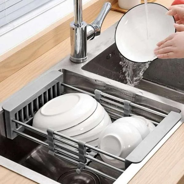 W zestawie: 1x Składany stojak do zlewu ze stali nierdzewnej