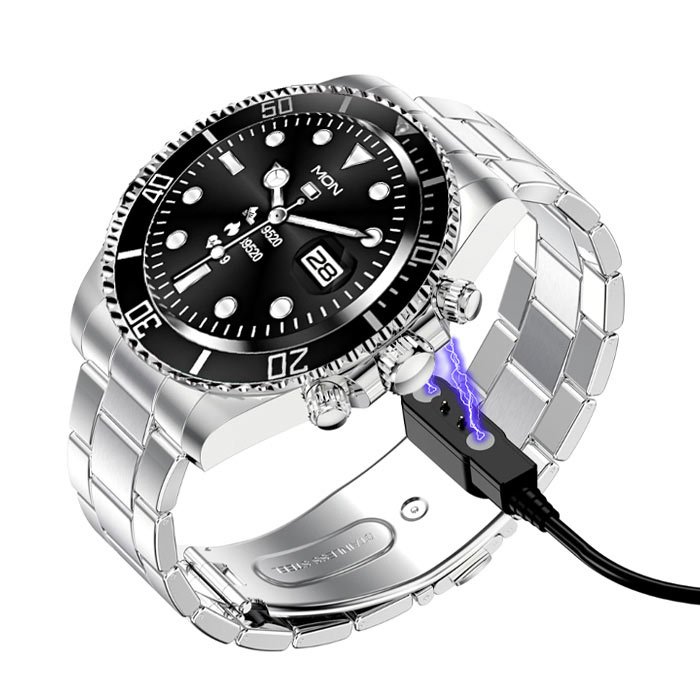 Smartwatch jest precyzyjnie wykonany ze stali nierdzewnej i zapewnia wyraźny wyświetlacz o wysokiej rozdzielczości i czułości, a ponadto pasek ze stali nierdzewnej jest wygodny w noszeniu. Możesz dostosować długość paska do każdego nadgarstka. Bateria jest wydajna i zapewnia długą żywotność zegarka. Obsługuje smartfony z systemem iOS 10.0 lub nowszym oraz Androidem 7.0 lub nowszym