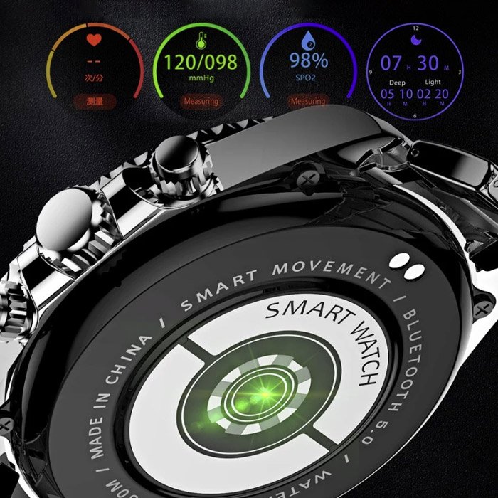 Elegancki, stylowy zegarek odpowiedni dla wszystkich mężczyzn i nadający się do noszenia na każdą okazję. W ciągu dnia mierzy tętno, przebyte kilometry, liczbę kroków, spalone kalorie, tlen we krwi i wiele więcej.