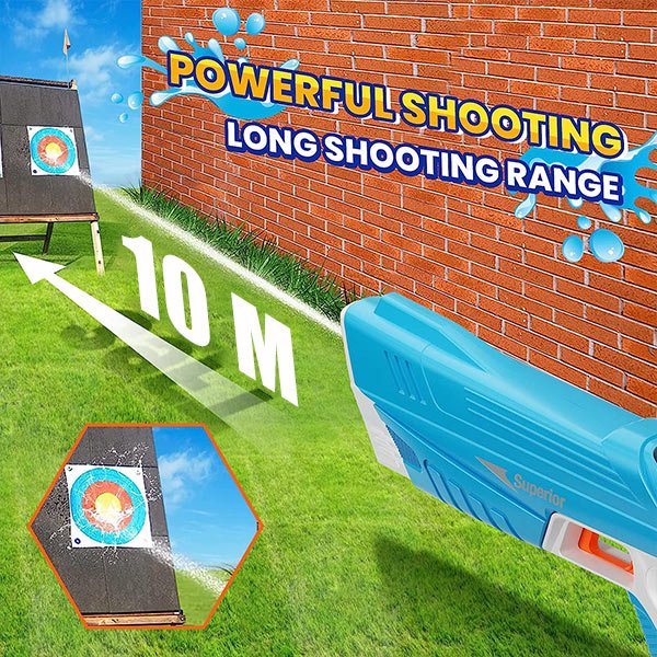 Zasięg pistoletu na wodę: około 8-10 metrów (pistolet na wodę nie powinien być zanurzany w wodzie)